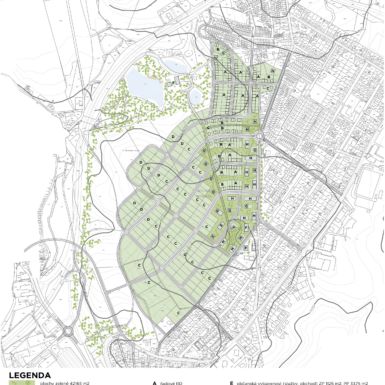 Návrh pracuje s druhovou rozmanitostí stávající zástavby a využívá pozvolnosti terénního reliéfu k výškové gradaci budoucí zástavby. Výběr funkční náplně v kombinaci se zónováním lokality a etapizací výstavby, vytváří variabilní možnosti pro zadavatele a investory.